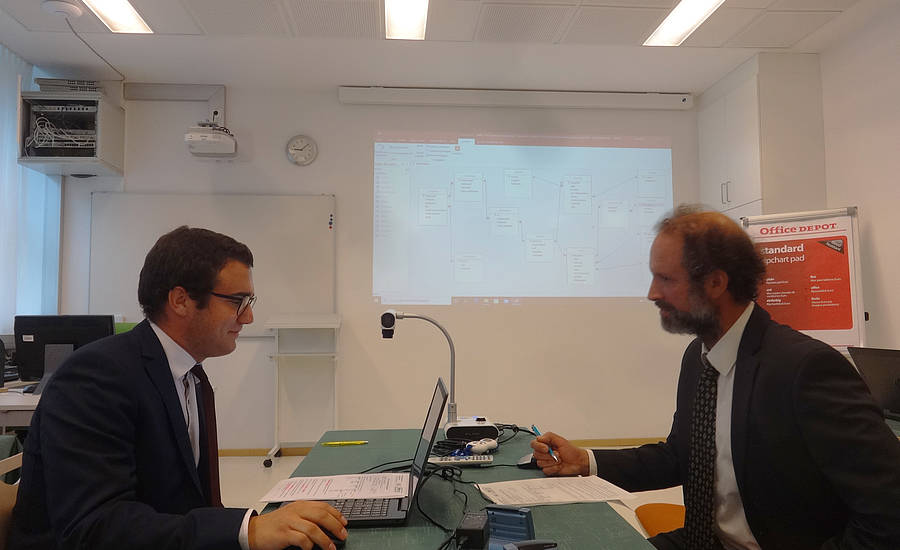 Mit Jan Hehenberger aus der V. digBiz HAK trat nur ein Kandidat aus den heurigen Abschlussklassen zur freiwilligen mündlichen Reife- und Diplomprüfung an. Er absolvierte bravourös seine Prüfung aus dem Wahlfach "Wirtschaftsinformatik" (im BBS-Bild v.l.n.r.: Jan Hehenberger, V. digBiz HAK, und Prüfer Prof. Mag. Robert Korntner). Alle anderen Kandidatinnen und Kandidaten erhielten ihre Beurteilung in den mündlichen Prüfungsgebieten auf Grund der Leistungen in den letzten beiden Semestern, in denen der jeweilige Gegenstand unterrichtet wurde. Insgesamt verliefen die heurigen abschließenden Prüfungen trotz der coronabedingten Einschränkungen problemlos und sehr erfolgreich.